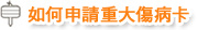 險對象經特約醫療院所醫師診斷確定所罹患的傷病是屬於公告之重大傷病時,可檢具下列文件郵寄或親自送件,向健保分區業務組申請重大傷病證明。